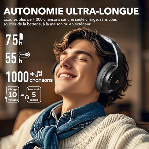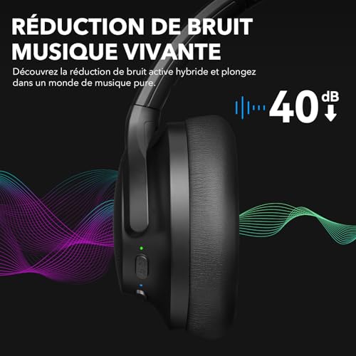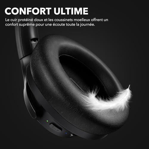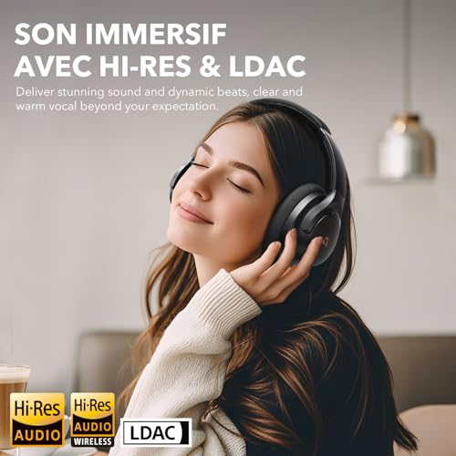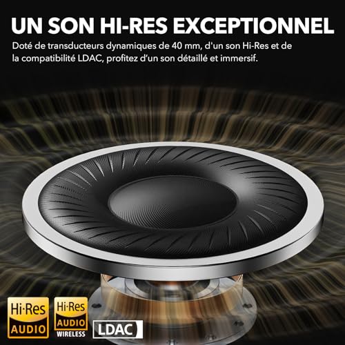 Audio Haute Résolution : Profitez d'un son de qualité studio avec la technologie LDAC et ses haut-parleurs de 40 mm, garantissant un son riche et équilibré. Réduction de Bruit : Réduit efficacement les bruits environnants pour une écoute immersive. Le mode transparence permet d'interagir facilement avec votre environnement. Autonomie : Jusqu'à 75 heures d'écoute sans interruption et recharge rapide, parfait pour les longues journées ou voyages. Confort : Les coussinets en mousse à mémoire de forme et l'arceau réglable offrent un confort optimal. Le design pliable facilite le transport. Connectivité : Utilisation sans fil via Bluetooth 5.3 ou filaire pour une flexibilité totale. Compatible avec la plupart des appareils.