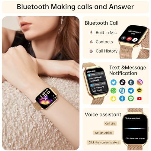 Découvrez la taopodo Montre Connectée Femme, une smartwatch élégante conçue pour répondre aux besoins des femmes actives. Ce modèle en or rose propose un écran HD tactile de 1,91" pour une navigation fluide et des images nettes.
