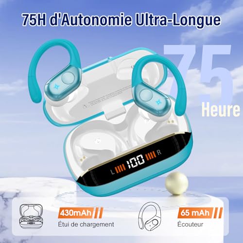 Autonomie de 75 Heures : Avec jusqu’à 15 heures d'utilisation par charge et un boîtier offrant 60 heures supplémentaires, ces écouteurs sont idéaux pour les voyages et les longues journées.