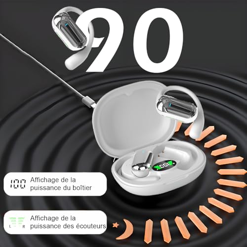 Longue Autonomie : Avec un boîtier de recharge de 400 mAh, bénéficiez de jusqu'à 90 heures d'écoute. L'écran LED du boîtier affiche clairement le niveau de charge, vous tenant informé à tout moment.