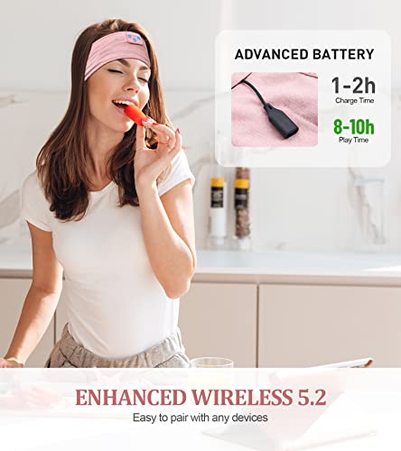 Design sans pression : Les deux haut-parleurs ultra-minces intégrés permettent un confort optimal même en position couchée ou pour dormir sur le côté, tout en bloquant le bruit ambiant sans utiliser de bouchons d'oreilles inconfortables. Longue durée de vie de la batterie : Avec sa batterie rechargeable haut de gamme, profitez de plus de 10 heures d'écoute en continu, et une charge rapide en seulement 2 à 2,5 heures pour une qualité sonore claire et stable grâce à la technologie Bluetooth 5.2. Matériaux confortables et lavables : Fabriqué en tissu respirant et extensible, le bandeau s'adapte à la plupart des têtes. Retirez simplement le module de contrôle pour un lavage facile en machine. Cadeau idéal : Un choix parfait pour offrir, que ce soit pour les femmes, les adolescents, les voyageurs ou en toute occasion spéciale comme les anniversaires et Noël.