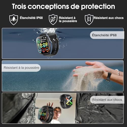 La certification IP68 de la montre garantit qu'elle est étanche, ce qui est utile pour la natation ou les activités par temps humide.