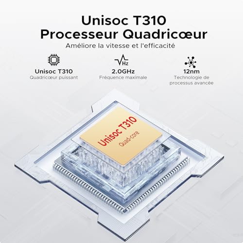 - Processeur avancé : Le puissant Unisoc T310, avec son cœur Cortex-A75, assure une performance mono-cœur augmentée de 120 %, parfait pour un usage bureautique et Internet sans effort.