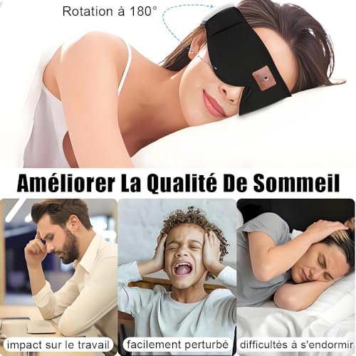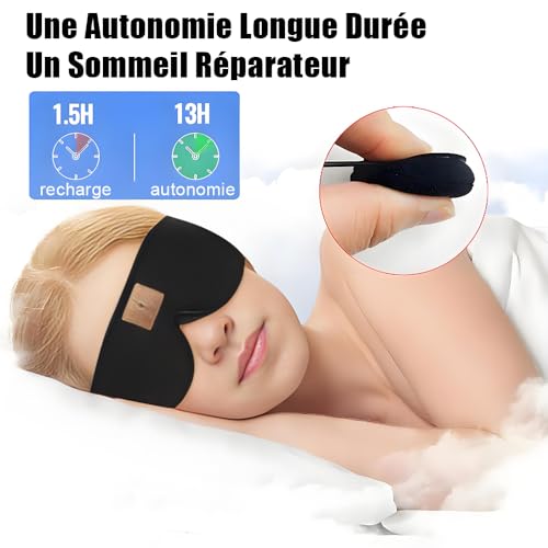 Conception 3D : Le masque épouse les contours de votre visage pour un confort optimal, tandis que son bandeau extensible s'adapte à toutes les formes de tête. Utilisation Prolongée : Une simple charge de 1,5 heure vous offre jusqu'à 13 heures d'écoute musicale ininterrompue, idéale pour une nuit complète de sommeil paisible. Isolation de Lumière : Le design unique couvre totalement les yeux et le nez, bloquant efficacement la lumière pour un sommeil réparateur, que vous soyez chez vous ou en déplacement. Compagnon de Voyage : Que ce soit pour un voyage, le sport ou le travail, ce bandeau vous offre une liberté totale d'écoute sans interruption ni gêne. Idée Cadeau : Parfait pour offrir, il séduira ceux qui aiment écouter de la musique en toute tranquillité. Il inclut un câble USB, un manuel et un élégant coffret de présentation.