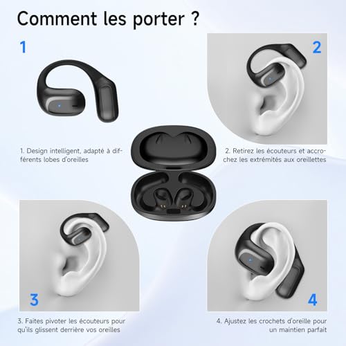 Confort optimal : Conception ouverte pour la protection du conduit auditif et composés de silicone doux pour la peau, ces écouteurs ne pèsent que 8 grammes, évitant toute pression et inconfort, même pendant les longues sessions d'écoute. Design ergonomique : Légers et étanches avec un indice IPX4, ces écouteurs résistent à la transpiration et à la pluie, idéaux pour les sports de plein air ou l'écoute de musique en déplacement. Contrôle tactile : Chaque écouteur est équipé d'un bouton tactile pour gérer la musique, ajuster le volume, activer l'assistant vocal et gérer les appels facilement et rapidement.