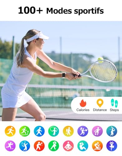 100+ Modes Sportifs : Que vous couriez, marchiez ou cycliez, cette montre suit vos mouvements avec précision. Surveillez vos pas, la distance parcourue et les calories brûlées pour maximiser vos séances d'entraînement.