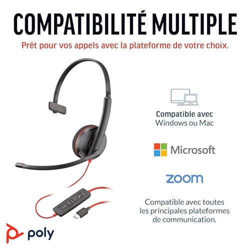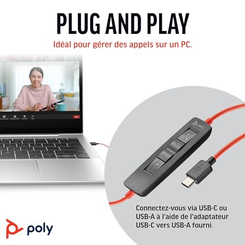 Découvrez la performance du Micro-casque filaire Poly Blackwire 3210, conçu pour transformer vos appels en une expérience claire et efficace. Idéal pour les professionnels, ce casque supra-auriculaire offre une connexion pratique à votre PC ou Mac via USB-C ou USB-A, parfait pour les utilisateurs de Teams et Zoom.