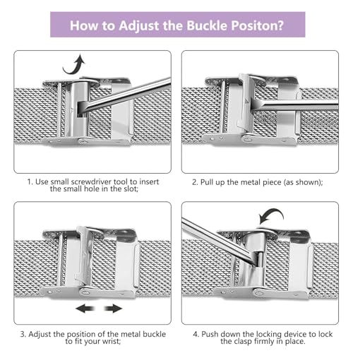 Installation Facile : Équipé de pattes à ressort à dégagement rapide et d'un fermoir à boucle, le bracelet se fixe solidement à votre montre et s'installe ou se détache sans outils.