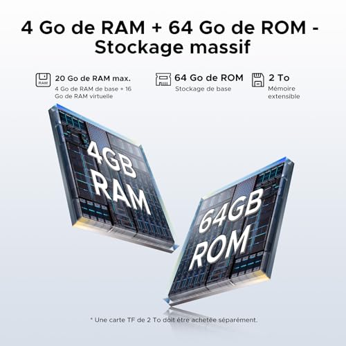 - Mémoire et stockage : 20 Go de RAM, 64 Go de stockage interne, extensible jusqu'à 2 To via carte TF. Parfait pour le multitâche, l'apprentissage et le divertissement.