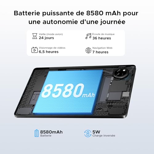 Équipée de Widevine L1, BT 5.0 et GPS, cette tablette est polyvalente et adaptée pour le travail ou les loisirs.