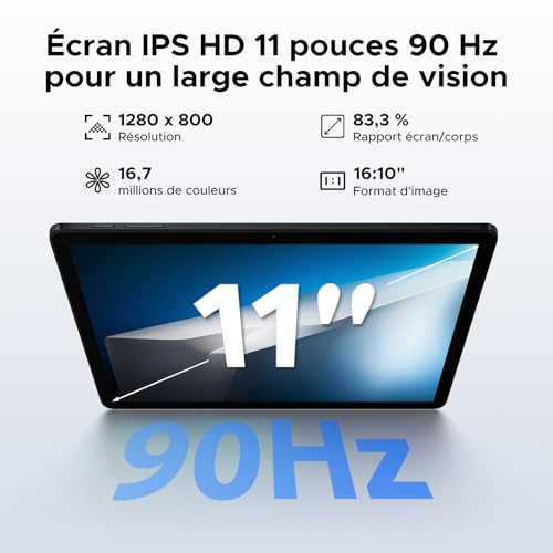 - Affichage : Écran IPS HD de 11 pouces avec un taux de rafraîchissement de 90 Hz et une résolution de 1280 x 800. Couleurs éclatantes et mouvements fluides pour une expérience visuelle exceptionnelle.