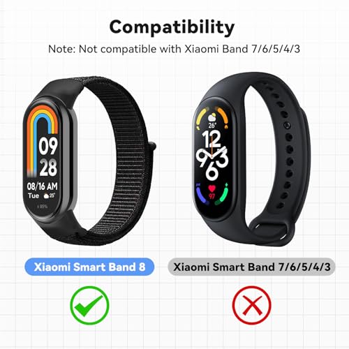 - Compatibilité et Ajustement Facile : Parfaitement adaptés aux Xiaomi Smart Band 9 et 8, ces bracelets s'ajustent facilement aux poignets de 150 mm à 185 mm grâce à un design à scratch, garantissant une installation simple et un maintien sécurisé.