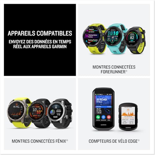 - Enregistrement : Capable de stocker des données essentielles telles que la fréquence cardiaque, les calories, la vitesse et la distance, même sans montre, et synchronise ces informations avec l’application Garmin Connect.