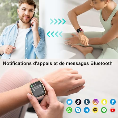 - Appel et Notifications : Restez connecté grâce au microphone et haut-parleur intégrés qui permettent de passer et recevoir des appels Bluetooth. Recevez également des alertes pour les messages et notifications des applications comme Facebook, Twitter et WhatsApp.