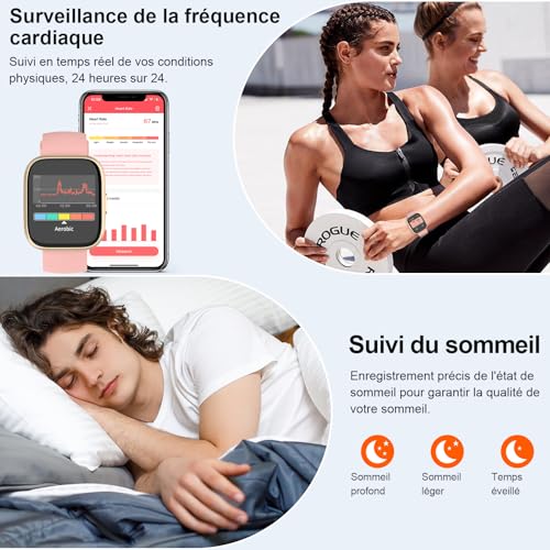 - Surveillance de la Santé : Bénéficiez d'une surveillance continue de la fréquence cardiaque et du sommeil, pour un aperçu détaillé de votre bien-être quotidien.