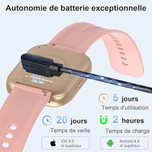 - Étanche et Compatible : Dotée d'une résistance à l'eau IP68, elle est compatible avec iOS 9.0 et Android 6.0 et au-delà, s'adaptant à votre style de vie actif.