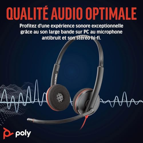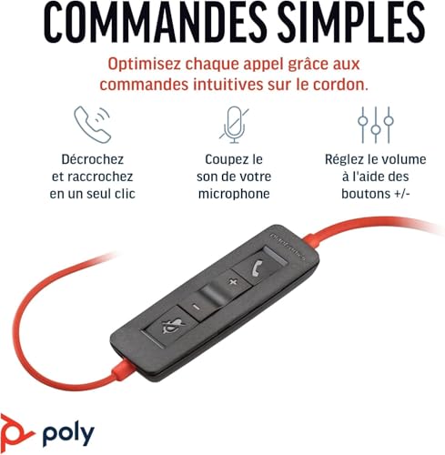 Découvrez le confort du micro-casque filaire Poly Blackwire 3220, conçu pour offrir une expérience audio optimale au bureau ou à la maison. Ce casque est équipé d'un microphone antibruit qui garantit que vos interlocuteurs n'entendent que vous, pas le bruit de fond.