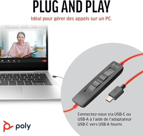Connexion pratique : Compatible avec PC et Mac, ce casque utilise une connexion USB-C ou USB-A, simplifiant la gestion des appels sur plusieurs appareils grâce à une connectivité plug-and-play fiable.
