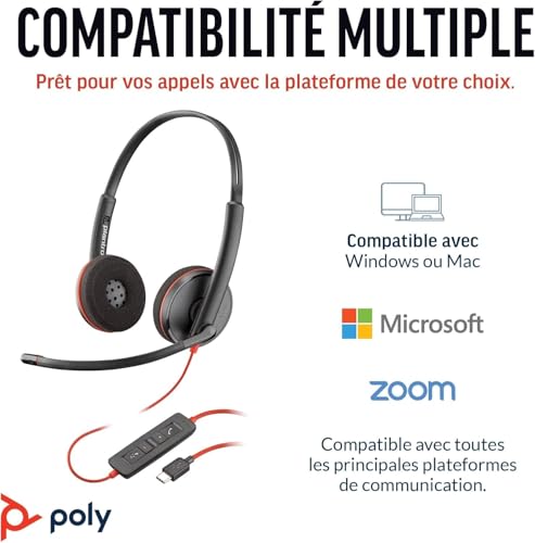 Offrez-vous une qualité sonore exceptionnelle et une flexibilité avec le Poly Blackwire 3220. Que ce soit pour des appels professionnels ou un usage multimédia, ce casque est un choix fiable pour une communication claire et efficace.