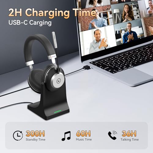Découvrez la praticité du casque audio professionnel sans fil de Wantek, conçu pour répondre aux besoins du télétravail et du gaming. Grâce à sa technologie Bluetooth 5.3 avec double mode 2.4GHz, profitez de communications claires et sans interruption sur PC ou PS5.
