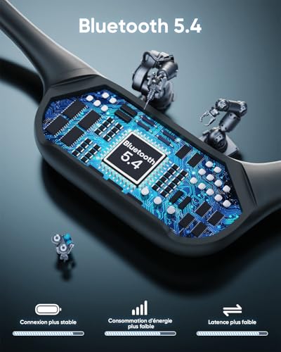 Stockage : La mémoire intégrée de 32 Go vous permet d'emporter jusqu'à 8000 morceaux de musique, idéale pour des entraînements variés. Mode Double : Alternez sans effort entre le mode MP3 et Bluetooth. Utilisez le mode MP3 en nageant, car le Bluetooth ne fonctionne pas sous l'eau. Bluetooth Avancé : Grâce à la puce Bluetooth 5.4, connectez vos écouteurs facilement pour des appels ou écouter vos morceaux préférés hors de l'eau. Tenue sécurisée : Design flexible à 360° et sangle réglable garantissant stabilité lors des activités intenses. Légèreté : À seulement 27 grammes, ces écouteurs offrent un son clair via vos pommettes, tout en restant confortables et sécurisés toute la journée.