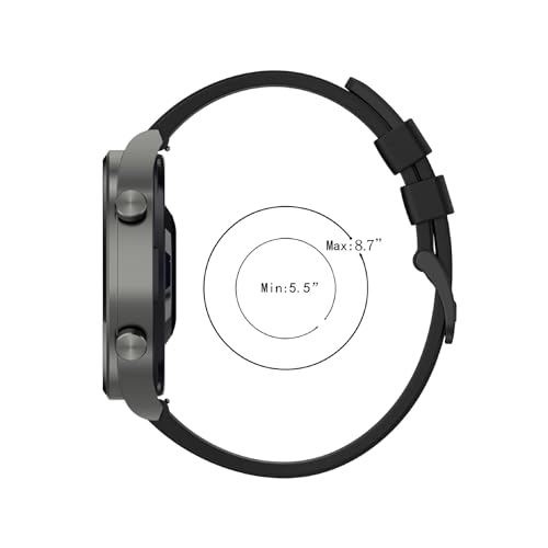 Compatibilité : S'adapte parfaitement aux montres Huawei Watch GT 2 46mm/GT 2 Pro/GT 2e, GT 3 46mm/GT 3 Pro 46mm, GT 46mm/GT 42mm, ainsi qu'aux Samsung Galaxy Watch 3 45mm/Galaxy Watch 46mm/Gear S3 Frontier/Classic, et autres montres avec bracelets de 22mm. Matériau : Fabriqué avec du silicone doux, ce bracelet garantit une sensation agréable et est résistant à l'eau, idéal pour un usage actif ou sportif. Sécurité : Le fermoir métallique en acier inoxydable noir associé à des boucles de bracelet doubles offre une stabilité maximale, même lors d'entraînements intensifs. Installation : Grâce aux barrettes à ressort intégrées, changer de bracelet devient rapide et sans effort, sans besoin de vis supplémentaires. Taille : Conçu pour s'adapter aux poignets de 5.5"-8.7" (155mm-220mm), ce bracelet saura convenir à la majorité des utilisateurs.