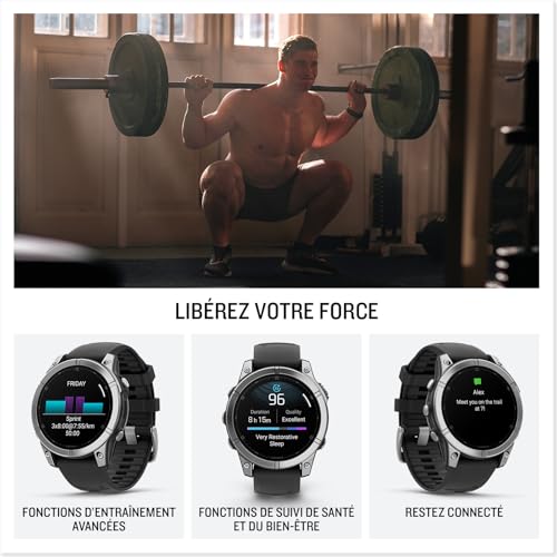 - Suivi de Santé : Surveillez vos paramètres de bien-être tels que la fréquence cardiaque, le niveau de stress et le sommeil grâce au Garmin Elevate Gen4.