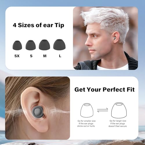 Matériau : Fabriqués en silicone souple et matériaux ABS, ces bouchons d'oreille sont non toxiques, inodores, et faciles à nettoyer pour une utilisation durable. Ajustement parfait : Disponible en quatre tailles (XS-L), chaque paire assure un ajustement confortable, que vous ayez de grandes ou petites oreilles. Sans cordon : Design discret et pratique sans cordon, pour une utilisation facile et confortable. Diversité d'utilisation : Parfaits pour le sommeil, le travail, les études, les concerts ou les voyages, réduisant significativement le bruit ambiant sans offrir un silence complet. Portable : Livré avec plusieurs tampons de tailles différentes et une boîte d'emballage portable, idéal pour les voyages et une utilisation quotidienne.