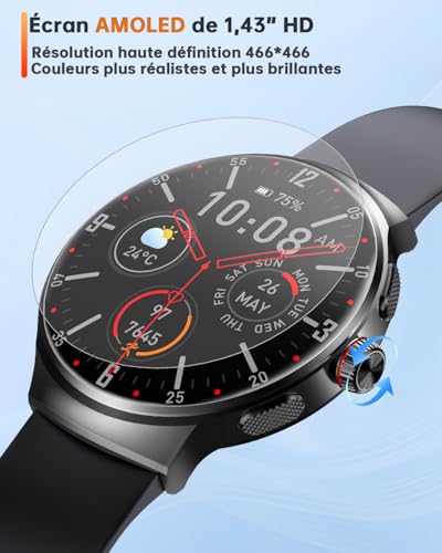 Découvrez la polyvalence de la Montre Connectée Homme Femme par OUKITEL, conçue pour s'adapter à un mode de vie actif. Cette montre intelligente allie fonctionnalité et style avec un écran AMOLED de 1,43 pouces pour une clarté visuelle incroyable.
