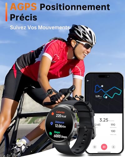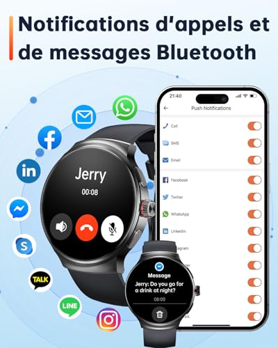 Appels Bluetooth et Notifications : Restez connecté sans effort. Recevez et passez des appels, recevez des notifications de SMS, Facebook, WhatsApp, et plus encore directement sur votre poignet pour ne manquer aucune information importante.