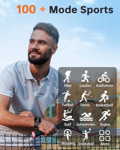 Modes Sportifs et Étanchéité : Avec plus de 100 modes d'exercices, suivez vos pas, calories brûlées, et distance. Certifiée IP68, cette montre résiste à la transpiration et à la pluie, idéale pour les entraînements quotidiens.