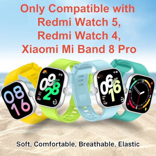 Compatibilité : Exclusivement pour les modèles Redmi Watch 5, Redmi Watch 4, et Xiaomi Mi Band 8 Pro, assurant un ajustement parfait. Taille ajustable : Mesurant 128 mm + 100 mm avec une longueur réglable de 155 à 216 mm, ces bracelets permettent un ajustement personnalisé grâce à leurs multiples trous de découpe de précision. Design ergonomique : Légers et respirants, ces bracelets en TPU réduisent l'accumulation de sueur, parfaits pour l'entraînement et le repos, assurant un port confortable tout au long de la journée. Matériau : Fabriqué en silicone liquide haute performance, résistant à la saleté, durable et doux, ces bracelets sont idéaux pour un port prolongé et confortable. Ensemble complet : Ce pack se compose de 6 bracelets interchangeables de couleurs variées, vous offrant la possibilité de changer de style selon vos envies.