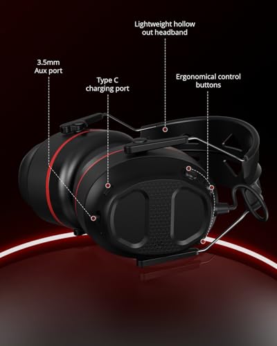 Confort Ergonomique : Le bandeau ajustable assure un confort optimal, tandis que les boutons larges sont pratiques, même avec des gants, rendant ce casque idéal pour la tonte, les travaux de construction ou l'étude.