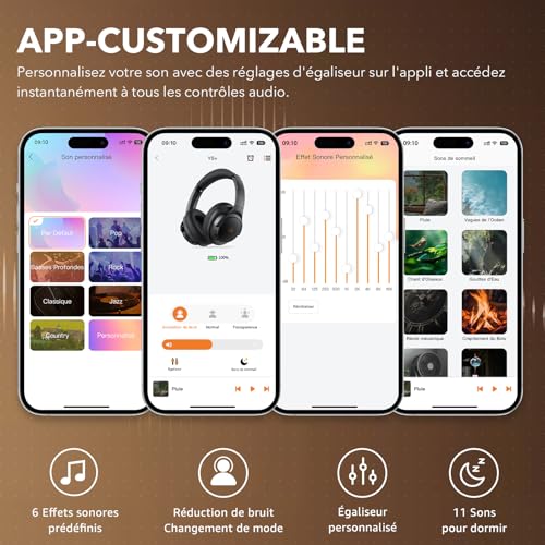 Confort et flexibilité : Les coussinets en mousse à mémoire de forme et l’arceau réglable offrent un port sans pression. Design pliable pour un transport facile, idéal pour vos voyages.
