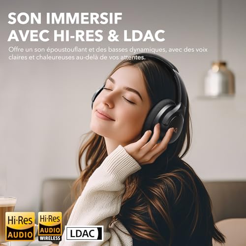 Son haute résolution : Intégrez-vous dans un univers sonore riche et précis avec les haut-parleurs de 40 mm, certifiés Hi-Res avec la technologie LDAC pour une reproduction sonore authentique.
