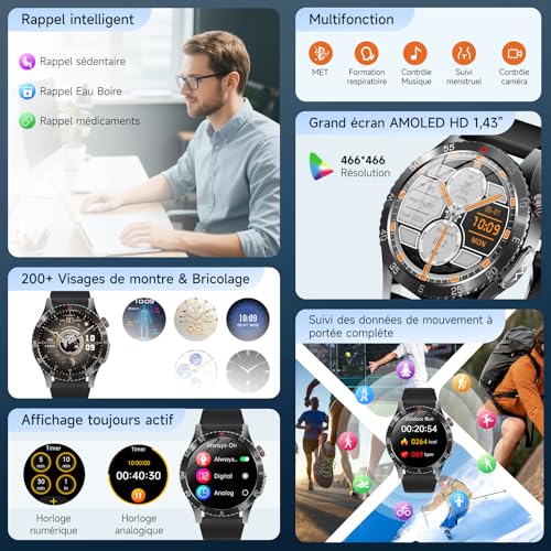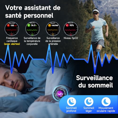Découvrez la fonctionnalité de la YUPENG Montre Connectée Homme, conçue pour optimiser votre bien-être et simplifier votre quotidien. Cette smartwatch avancée, dotée d'un écran AMOLED 1,43", propose une surveillance de la santé non invasive, vous alertant sur les anomalies cardiaques grâce à l'analyse HRV et surveillant votre niveau de fatigue.