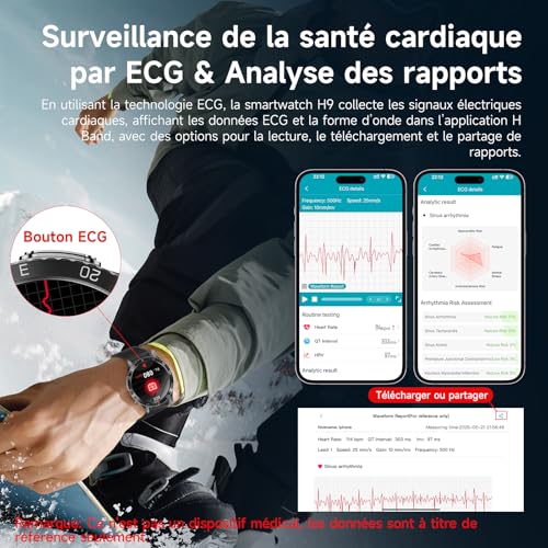 Compatibilité : Fonctionne avec Android 5.0 et versions supérieures, iOS 10.0 et versions supérieures. Surveillance de la santé : Surveille la fréquence cardiaque, la pression artérielle, le taux d'oxygène sanguin et suit la qualité du sommeil. Des rapports d'analyse corporel fournissent des indications sur l'acide urique et le cholestérol sans prélèvement sanguin. Connectivité Bluetooth : Permet de recevoir des notifications d'appels, messages, et alertes d'applications. Inclut une assistance vocale pour gérer votre musique et vos rappels. Fonctionnalités pratiques : Intègre un écran tactile HD, plus de 200 cadrans personnalisables, et des outils utiles comme la calculatrice et le suivi météo. Autonomie longue durée : Batterie 390 mAh offrant 5-7 jours d'utilisation quotidienne et jusqu'à 30 jours en veille. Étanche IP68, non adapté à l'eau chaude ou de mer.